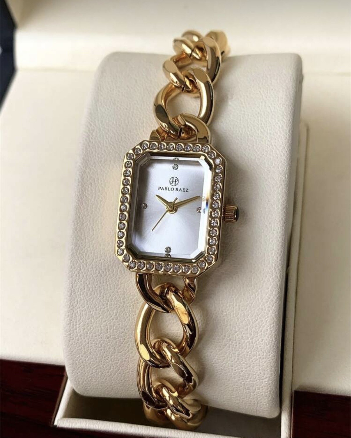 Pablo Raez elegáns női karóra , 18K arany bevonat, kristály díszítés, vízálló