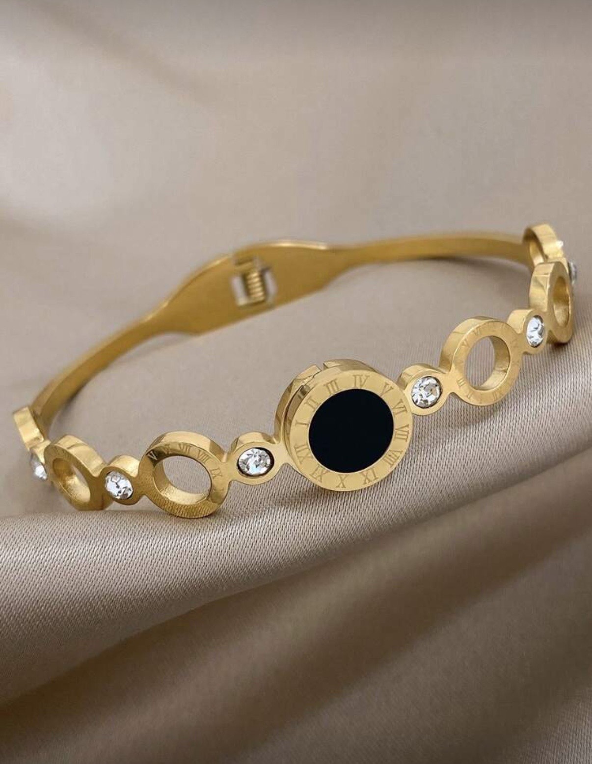 Róma 18 karátos aranyozott, prémium minőségű nemesacél karperec