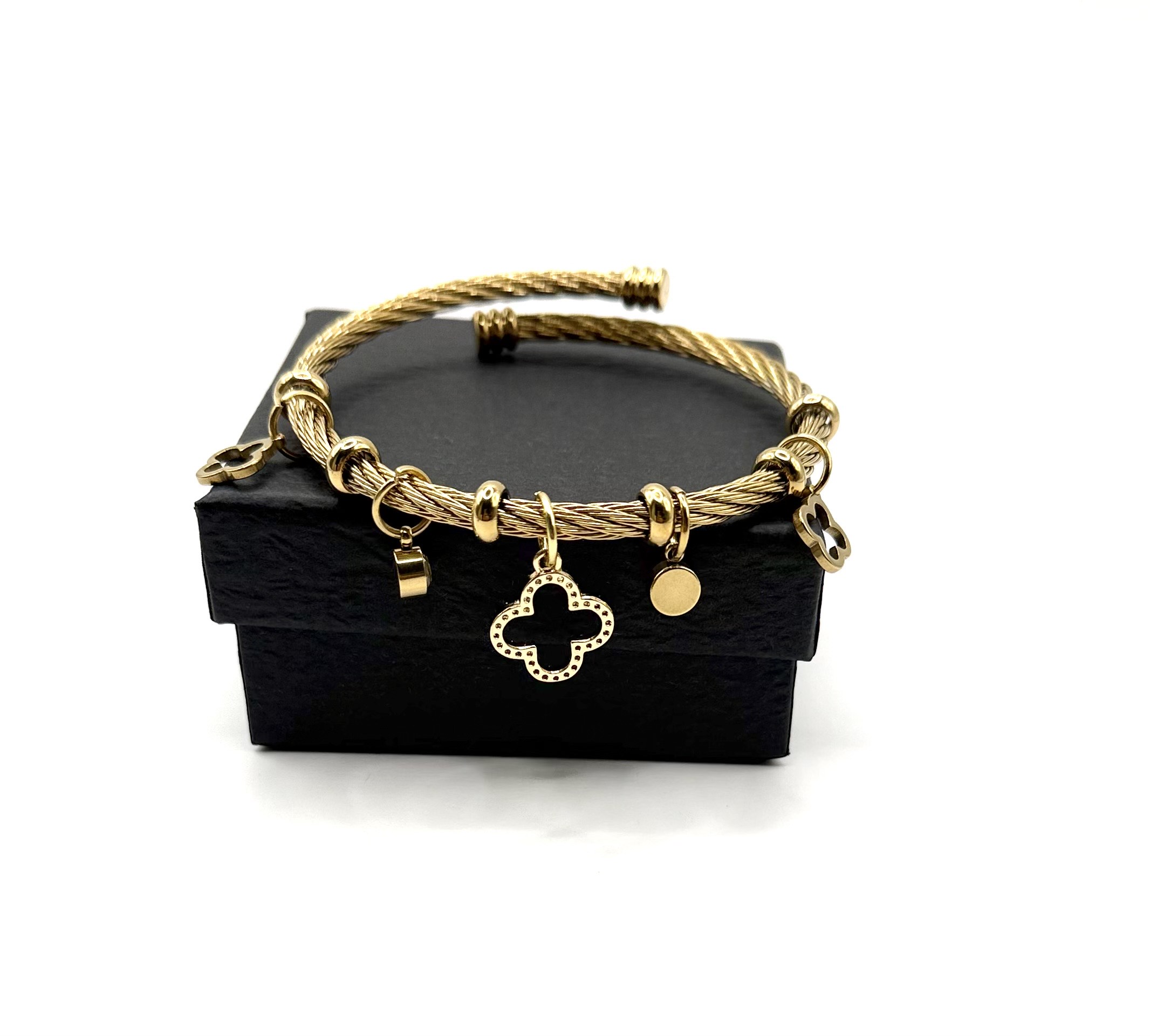 Elegáns és időtlen kiegészítő, amely minden megjelenéshez tökéletesen illik. A Clover karperec prémium minőségű, fényesre polírozott rozsdamentes acélból készült, így tartós, nem fakul és nem kopik. Az ikonikus lóhere motívum a szerencsét és harmóniát szimbolizálja, míg a finom kidolgozás és a letisztult forma nőies eleganciát sugároz.