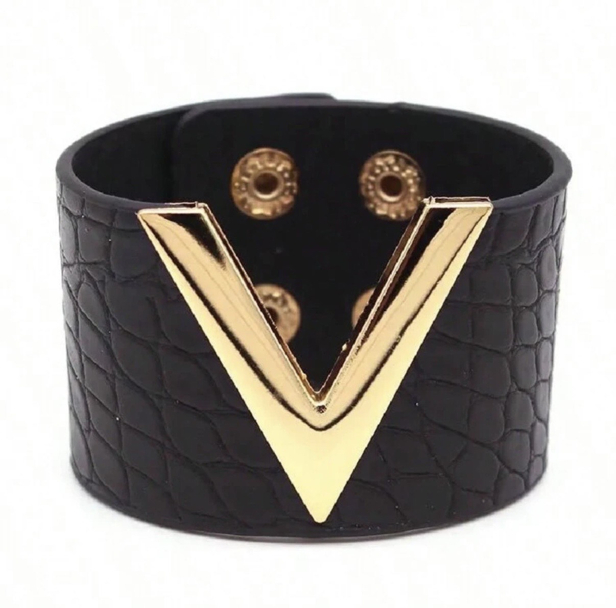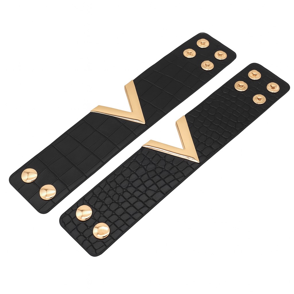 Fekete krokodil mintás karkötőpánt aranyszinű díszítéssel. A fémpatentok stabil rögzítést adnak,a puha anyag pedig kényelmes viselést biztosít.Állítható méret.