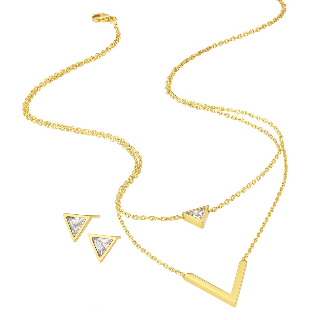 Valentina dupla nyaklánc és fülbevaló szett – rozsdamentes acél, cirkónia kővel