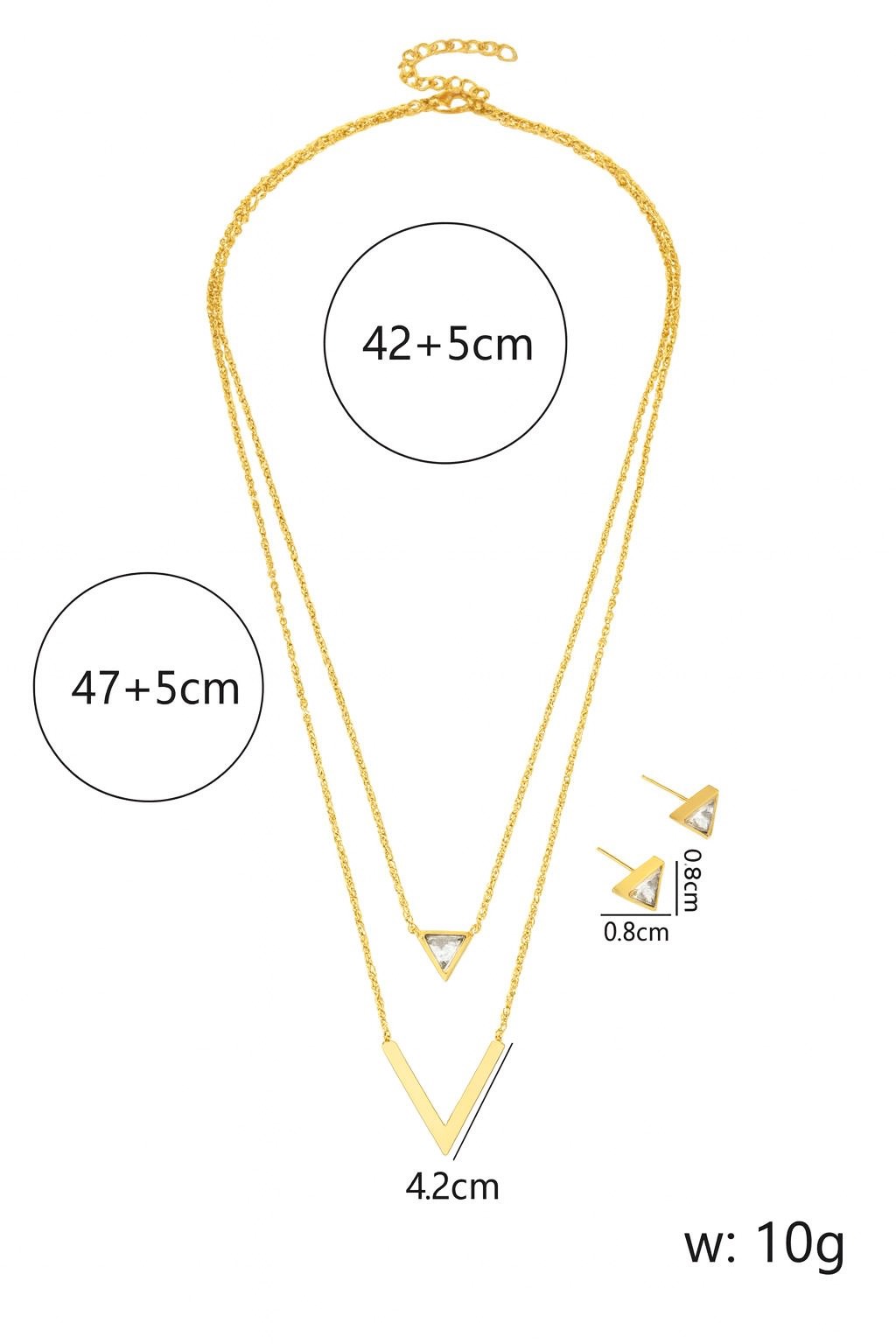 A Valentina ékszerszett elegáns és trendi választás minden alkalomra. Kiváló minőségű rozsdamentes acélból készült, amely nem színeződik el, a dupla nyaklánc rétegzett stílusa és a csillogó cirkónia kövek pedig nőies, modern megjelenést biztosítanak. Ideális ajándék vagy stílusos kiegészítő a mindennapokra.Ajándék ékszerdobozban küldjük minden termékünket!
